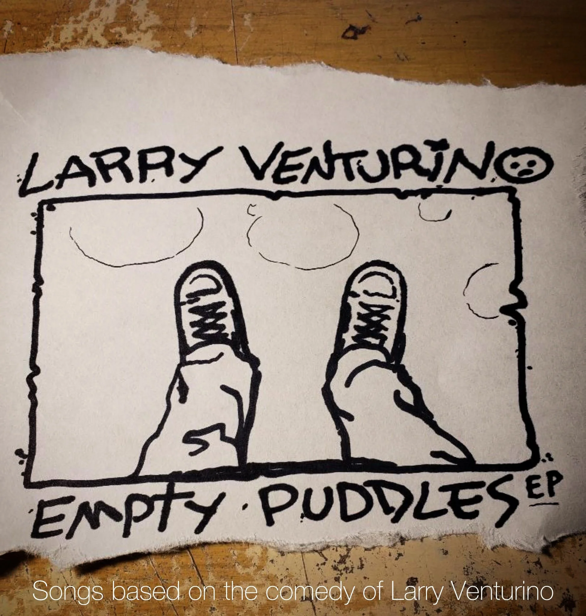 With 80s vibes, singer-songwriter jams, and a closing punk title track, Empty Puddles delivers songs based on the comedy of Larry Venturino. Dark, quirky, and bizarre stand up comedy jokes and lyrics are brought to life in a new, fresh comedic fashion. If you catch one of his live shows, you may be able to experience him “playing” a tune from “Empty Puddles.”